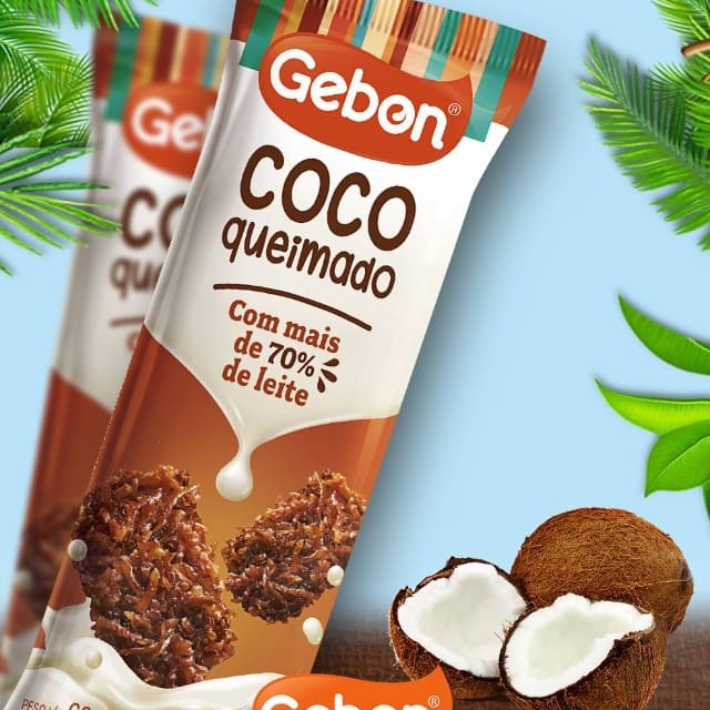 Sorvete de coco com recheio de caramelo toffee e macadâmias torradas.