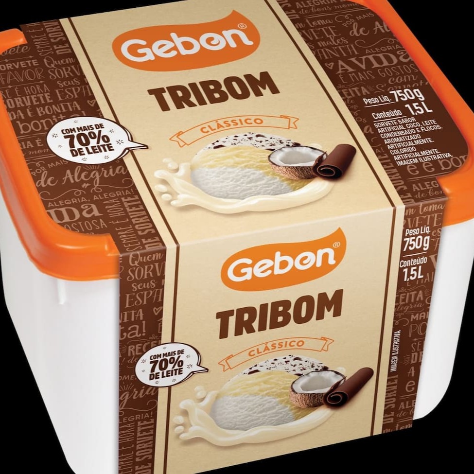 Pote 1,5 litros sorvete tribom. Leite condensado, coco branco e flocos