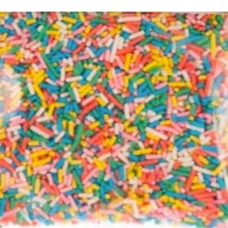 Cobertura para sorvetes, sabor de tutti-frutti.