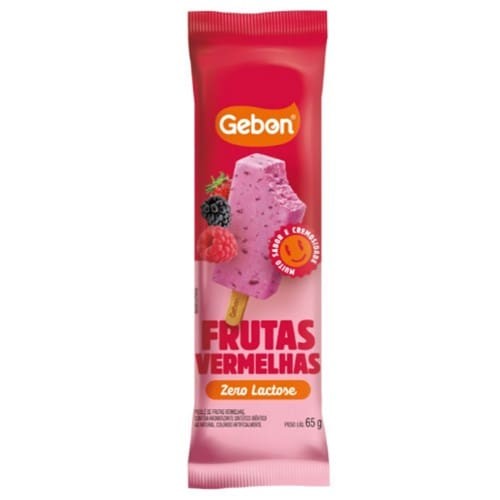 Sorvete Paletas Sabor Frutas Vermelhas Sem Lactose Gebon 65g