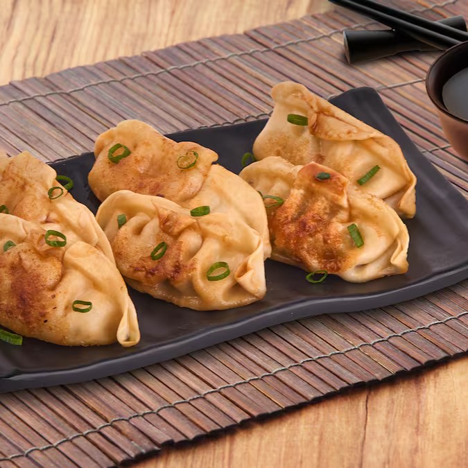 Massa fina recheada com carne suína e legumes finalizada com cebolinha picada. Acompanha molho à base de shoyu e gengibre (6 unids).
