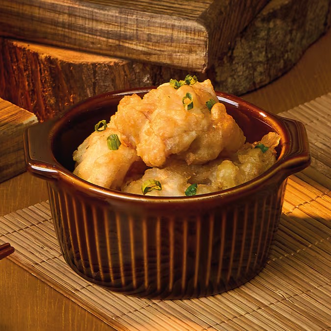 Pedaços de frango marinados em especiarias, empanados e fritos. Finalizado com cebolinha. (3 unidades)