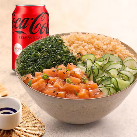 Poke Salmão Ao Molho Oriental Base Arroz + Coca-cola