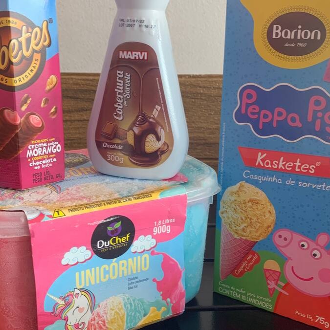 Sorvete 2 litros + Casquinha ( 18 unidades) + Cobertura (280g) + Tubetes