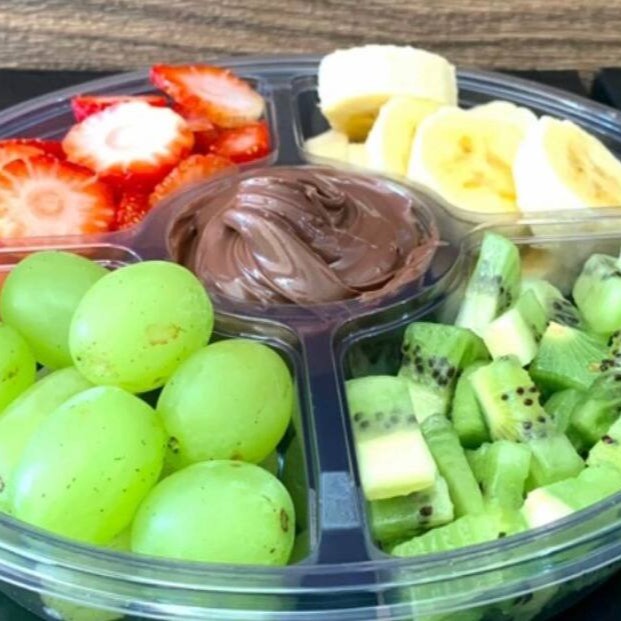 Um delicioso fondue de chocolate e você pode escolher até 4 frutas e escolher se quer Nutella ou mousse no meio
