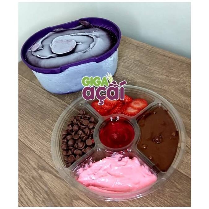 Giga 5 Açaí 1 Litro +m. Morango+nutela+morango+gotas De Choco.+cober. Morango