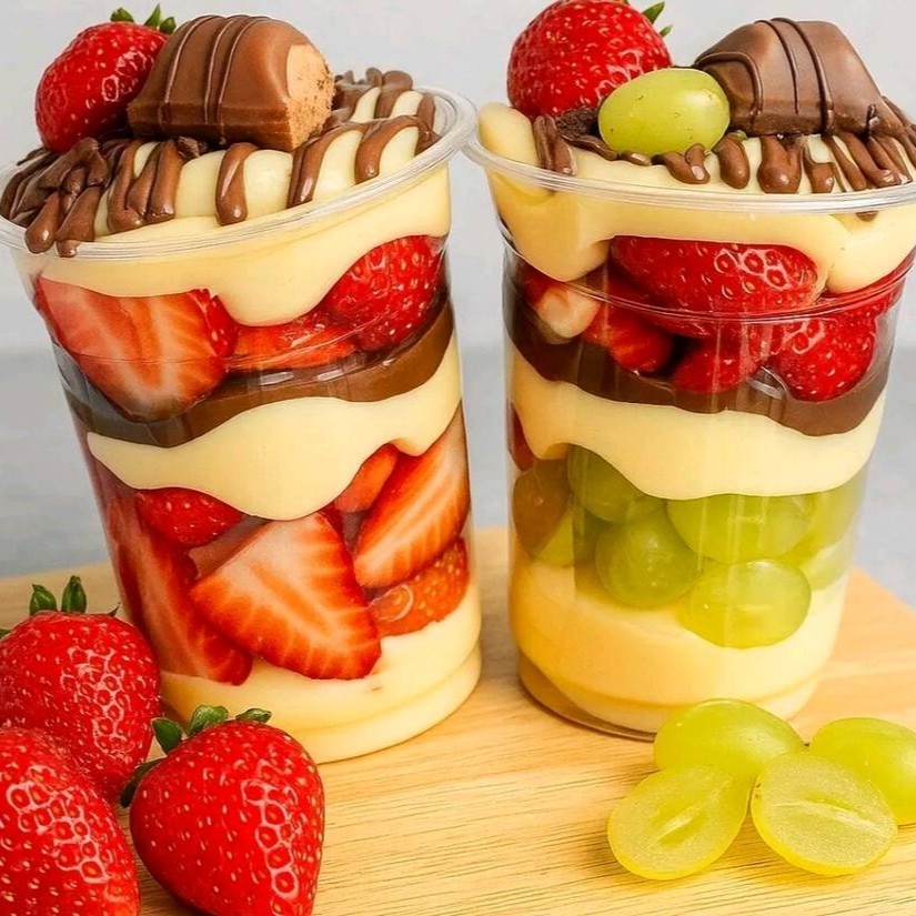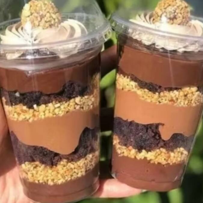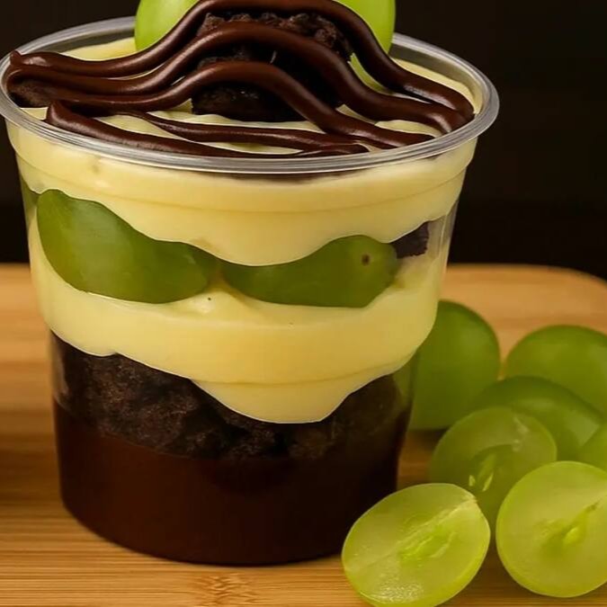 Uma combinação deliciosa de camadas cremosas de leite Ninho com chocolate intenso, intercaladas com pedaços de brownie macio e uvas verdes fresquinhas, que trazem leveza e equilíbrio ao sabor. Finalizado com uma cobertura generosa de chocolate que derrete na boca, esse copo entrega uma experiência única a cada colherada.