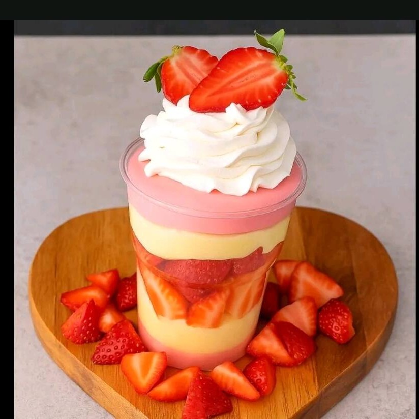 Um copo que conquista desde a primeira colherada. Cremoso, fresquinho e cheio de sabor, com camadas suaves de leite Ninho e brigadeiro de morango, combinadas com morangos bem suculentos e galeia. Por cima, um toque de chantininho bem leve e mais morangos para deixar tudo ainda mais delicioso.