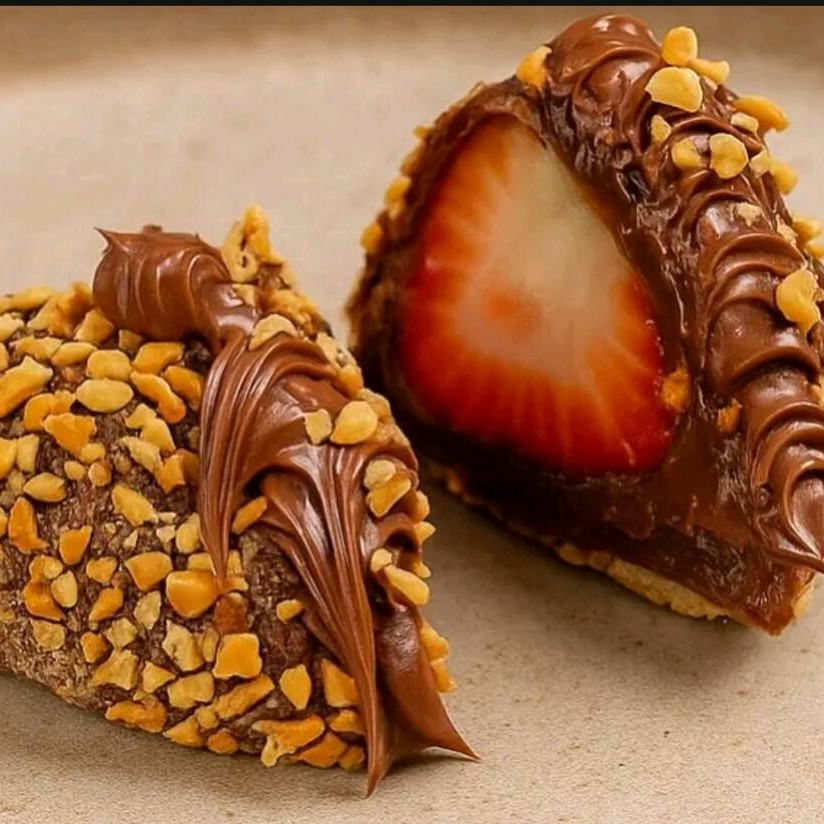 Morango fresco envolvido em um brigadeiro cremoso de chocolate. Por fora, é finalizada com uma generosa camada de Nutella e passada em amendoim com avelã, trazendo aquela crocância irresistível que lembra o clássico Ferrero Rocher. Um doce sofisticado, intenso e simplesmente apaixonante