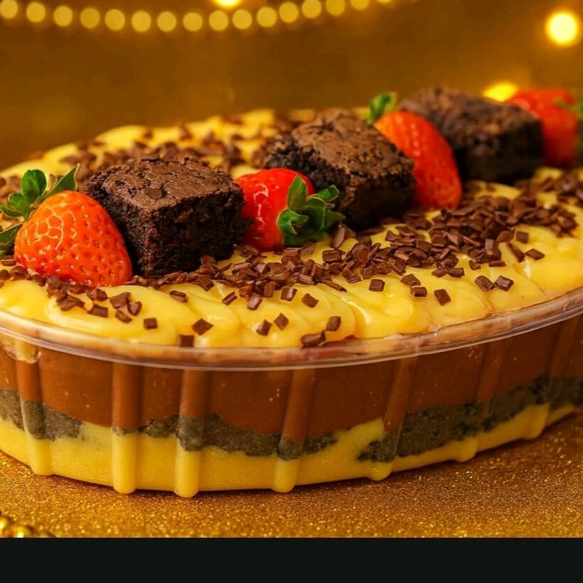 Um verdadeiro carinho em forma de sobremesa! Camadas generosas de brownie artesanal super macio, morangos fresquinhos e suculentos, combinados com um brigadeiro dois amores ultra cremoso — chocolate meio amargo e leite Ninho na medida perfeita. Cada colherada entrega o equilíbrio ideal entre o sabor intenso do chocolate, a leve acidez do morango e a cremosidade irresistível do brigadeiro. Uma sobremesa feita para encantar, adoçar o Dia e transformar qualquer momento em algo especial.