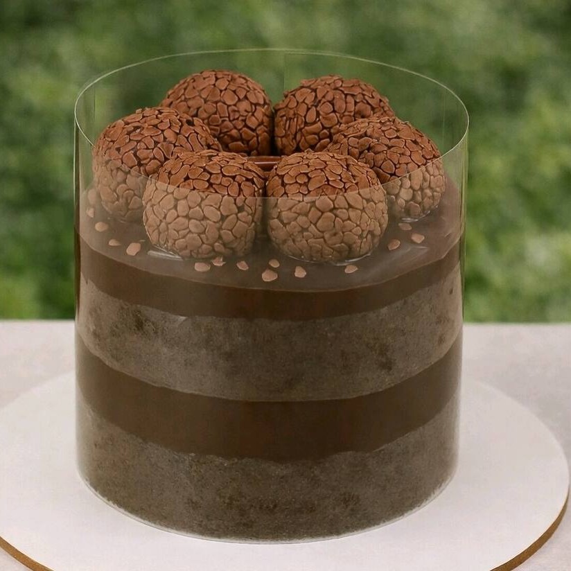 A finalização fica por conta de brigadeiros gourmet com granulado meio amargo, trazendo ainda mais sabor e elegância. O acabamento em acetato garante uma apresentação bonita, moderna e impecável.