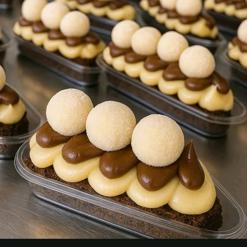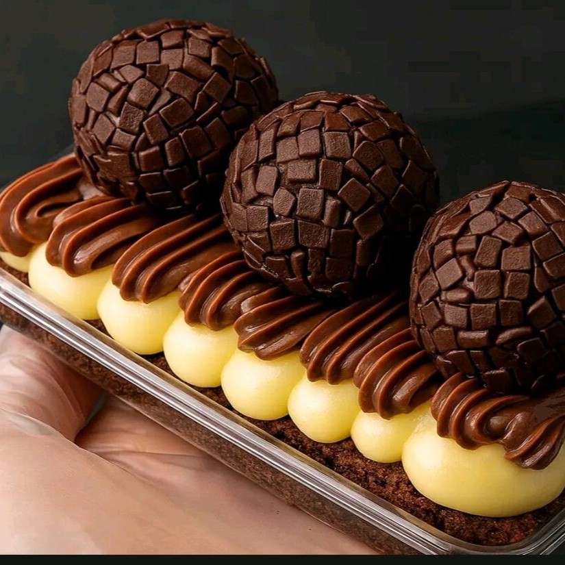 Base de brownie húmedo y macio, cubierta con una generosa capa de brigadeiro de Leite Ninho, hilos cremosos de Nutella y coronada con 3 brigadeiros gourmet que hacen cada mordida aún más especial.