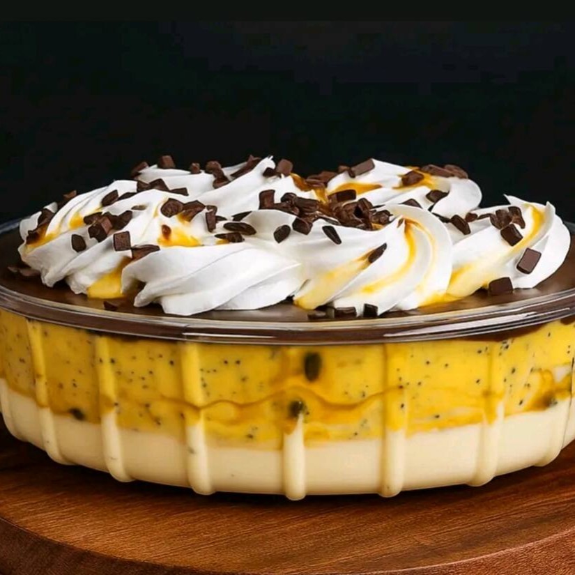 Uma travessa irresistível, feita com uma base generosa de brigadeiro de leite Ninho, super cremoso e aveludado. Sobre ele, um creme maravilhoso de maracujá, com sabor equilibrado e textura delicada, que traz frescor e leve acidez na medida certa.