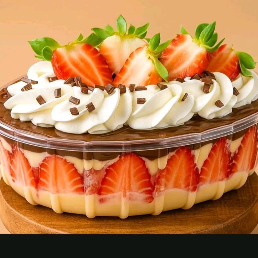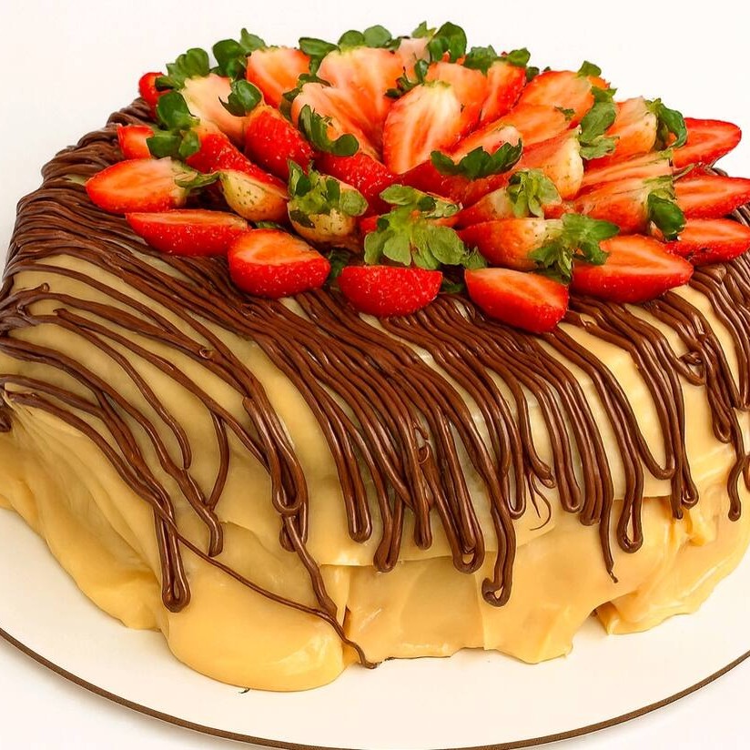 Finalizado com uma camada generosa de creme e morangos selecionados, ele encanta tanto no visual quanto no sabor. Um doce equilibrado, perfeito para quem ama sobremesas suaves e sofisticadas.