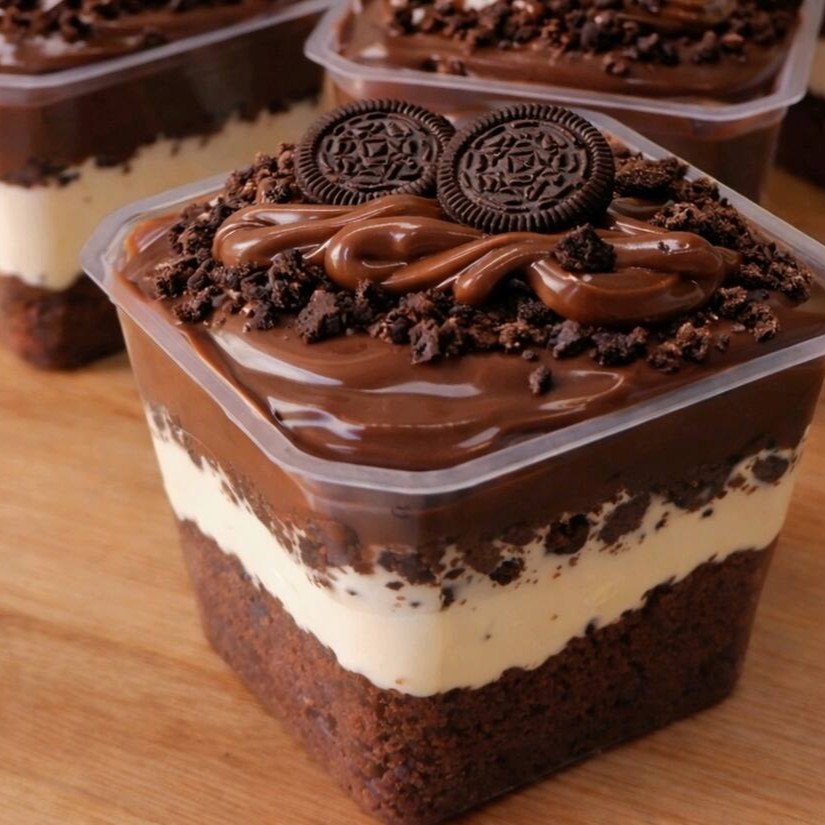 Uma explosão de sabor em cada camada! Começa com uma base de brownie de super macio, seguida por brigadeiro Ninho, com pedacinhos de Oreo, que traz aquele crocante irresistível con Nutella no meio. Para finalizar, uma camada generosa de brigadeiro de chocolate decorada com Oreos inteiras e trituradas, deixando tudo ainda mais irresistível.