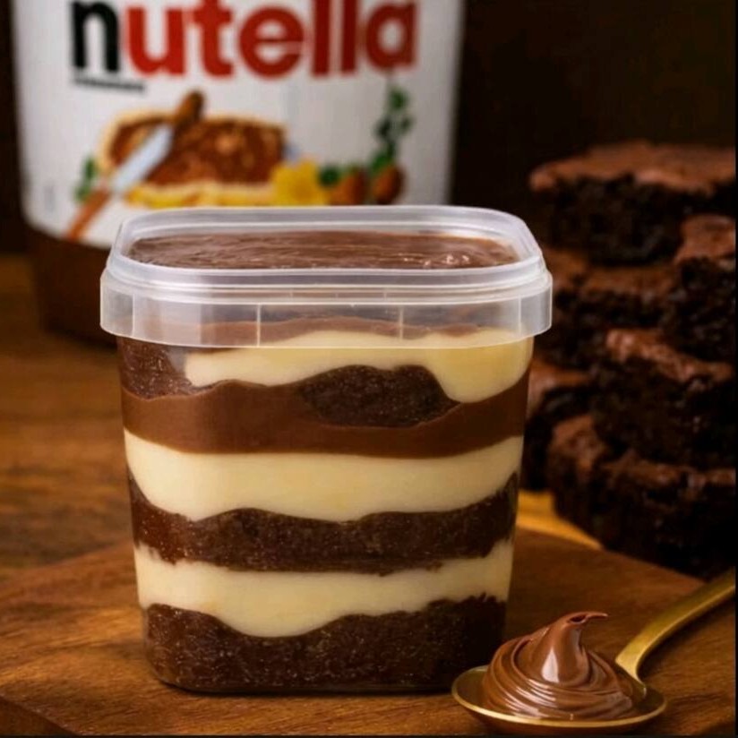 Prepare-se para se apaixonar! Nosso brownie no pote é feito com brownie artesanal de chocolate, super úmido e intenso, intercalado com creme de Leite Ninho bem cremoso e camadas generosas de Nutella, trazendo o equilíbrio perfeito entre o doce e o chocolate.