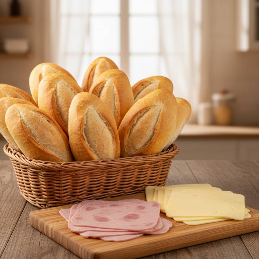 Combo contendo 10 Pães Frances, 10 fatias de Queijo e 10 fatias de Presunto