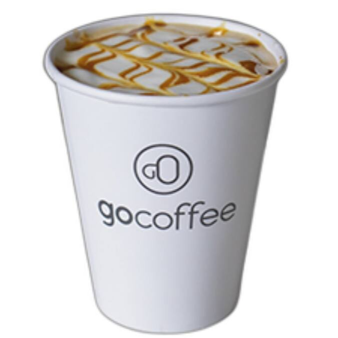 Café espresso + leite vaporizado + caramelo. (400 ml)