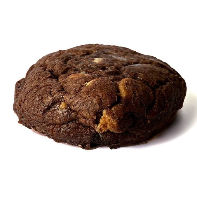 Cookie de massa de chocolate recheada com chocolate ao leite, meio amargo e branco. Uma explosão de sabor!