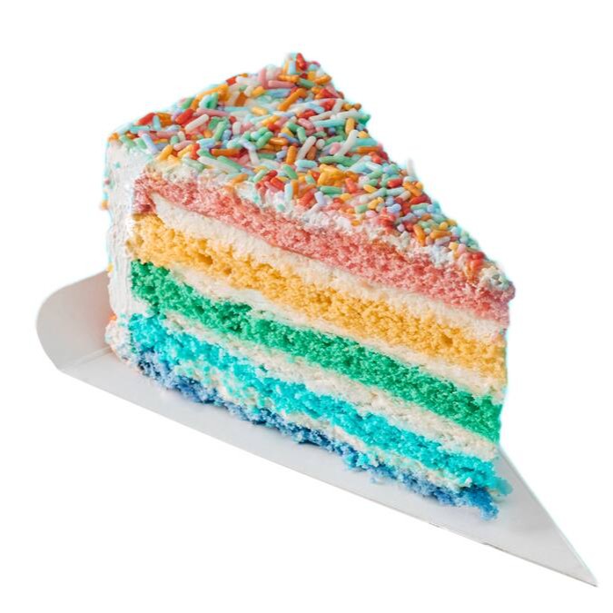 Fest Cake, fatia de torta com 5 camadas de pão de ló coloridos, recheio cremoso de cream cheese, cobertura de chantilly e granulado colorido. Cada fatia é uma explosão de sabor que certamente irá agradar o seu paladar. Uma grande experiência gastronômica verdadeiramente deliciosa está à sua espera!