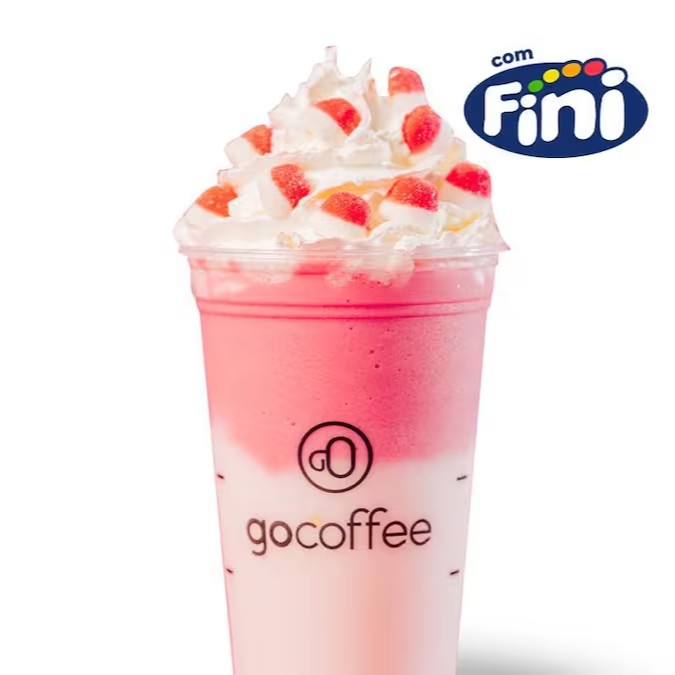 Um delicioso Frappe de baunilha e morango, finalizado com fini mini beijinhos e chantilly. Uma explosão de sabores que dá agua na boca, não deixe de provar.