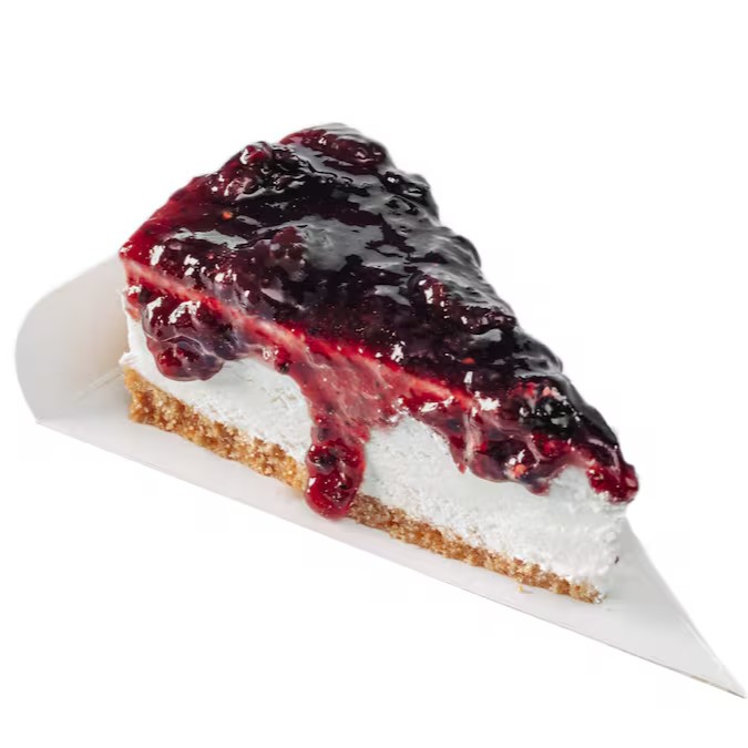 Torta Cheese Cake de Frutas Vermelhas, fatia de torta à base de biscoito e cream cheese, coberta com geléia de frutas vermelhas. Cada fatia é uma explosão de sabor que certamente irá agradar o seu paladar. Uma grande experiência gastronômica verdadeiramente deliciosa está à sua espera!
