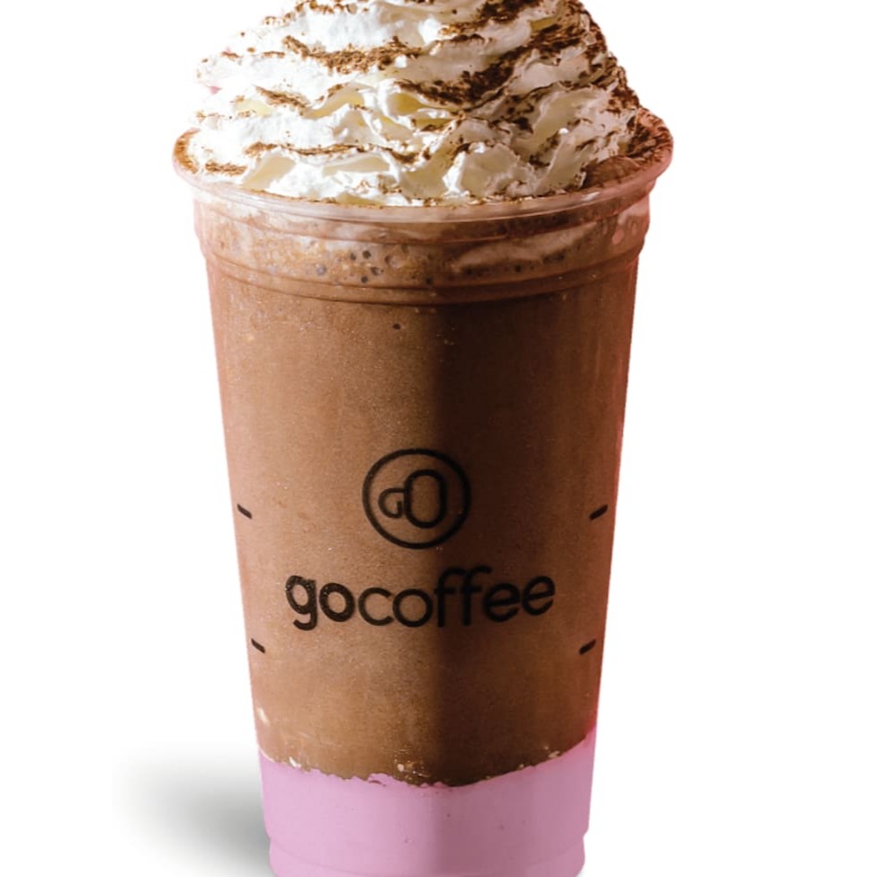 Muita crocância e chocolate em um único frappe feito a base de café ou creme + xarope de chocolate + gotas de chocolate + leite + gelo + chantilly + cobertura.