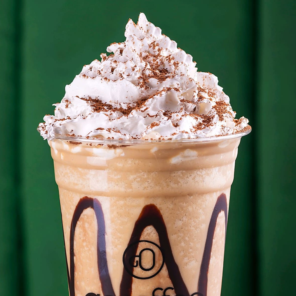 Chocolate \o/ Base café ou creme + syrup + leite + gelo +chantilly + cobertura. Café e chantilly são opcionais. O Chantilly é enviado em um potinho separado.