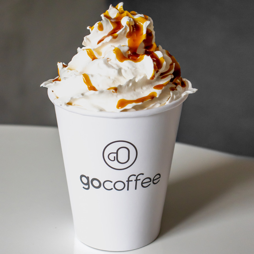 Café espresso duplo + leite vaporizado + dobro de caramelo + chantilly [400ml]