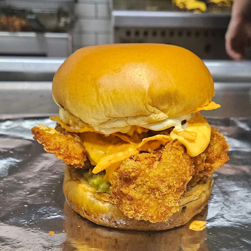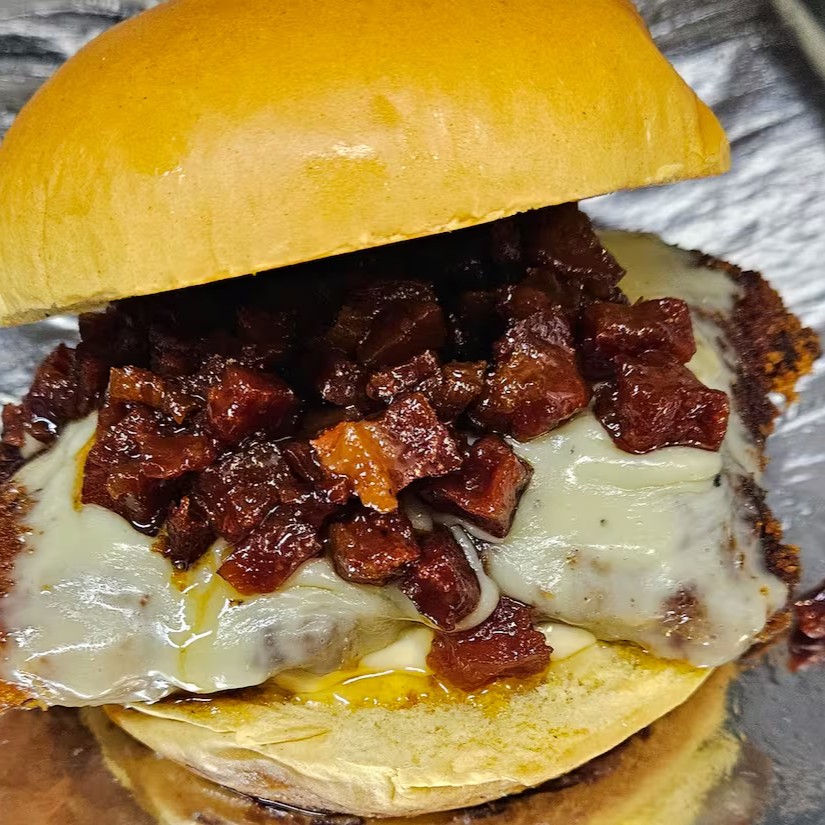 Versão de bacon no frango empanado mais amado da city, acompanhado de cheddar cremoso, bacon e maionese da casa