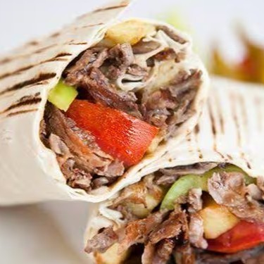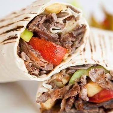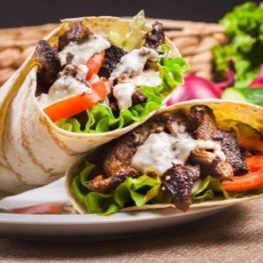 Pão sírio, carne, calabresa, Requeijão, molho de alho, batata frita, tomate, alface e cebola.