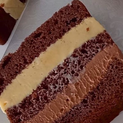 Massa de chocolate bem molhadinha, com recheio de chocolate belga trufado e recheio de brigadeiro de Ninho gourmet. #slicecake #bolodechocolate #doisamores