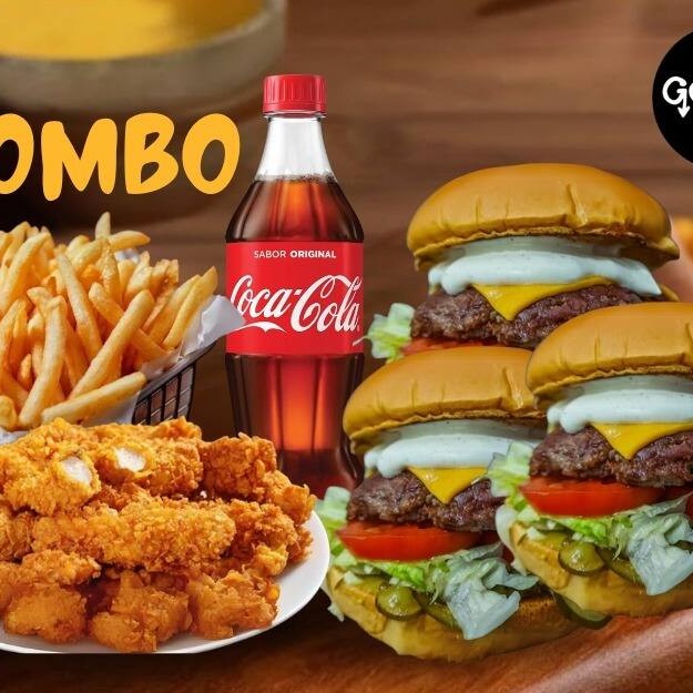 3x- Cheese Salada - Hambúrguer+ 1x Coca-cola 600ml+porção Batata E Frango 500g
