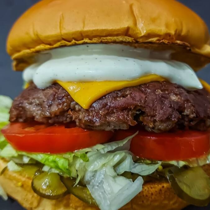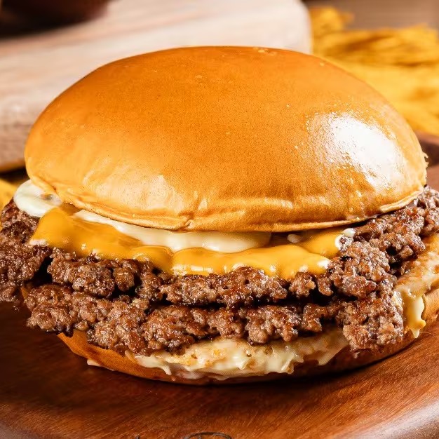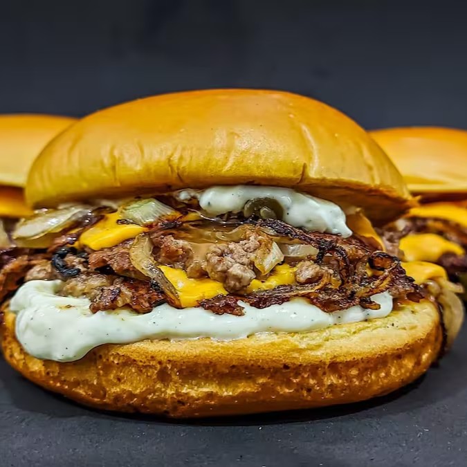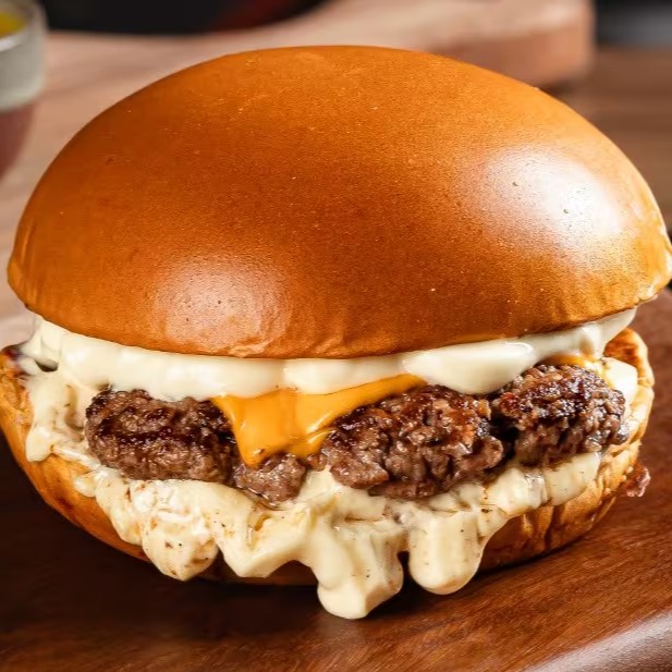 Pão de Brioche, Tostado na Chapa, 2x Carne Smash, Cheddar em Fatias e Maionese Especial da Casa.