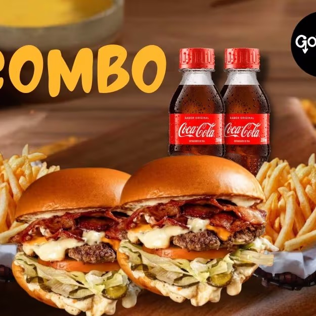 Nesse Combo Para Compartilhar Leva: 2x Cheese Burguer Bacon S U P R E M O, Pão de Brioche, Tostado na Chapa, Hambúrguer Artesanal, Queijo Cheddar em Fatias, Bacon em Fatias, Alface Americana, Tomate em Fatias, Picles Artesanal e Maionese Especial da Casa.+ 2x Porção de Batata Frita Palito 150g(in natura )cada.+ 2x Coca - Cola 200 Ml;