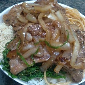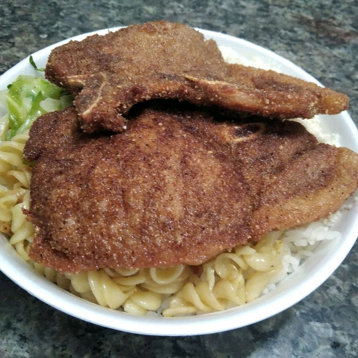 Arroz ,feijão,macarrão,farofa ,e salada do dia
