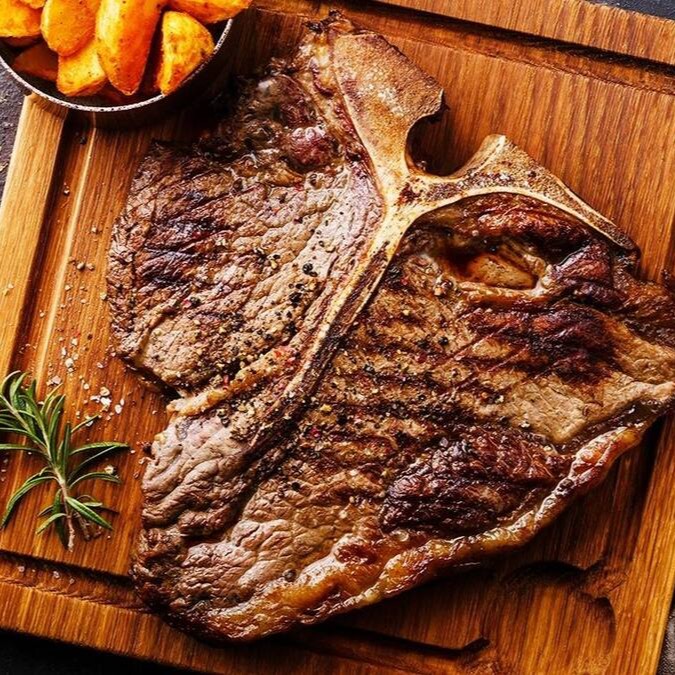 Aprox 600 g de T-bone assado na brasa.