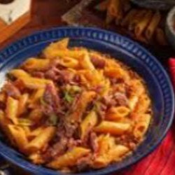 Massa ao sugo, com tiras de carne.
