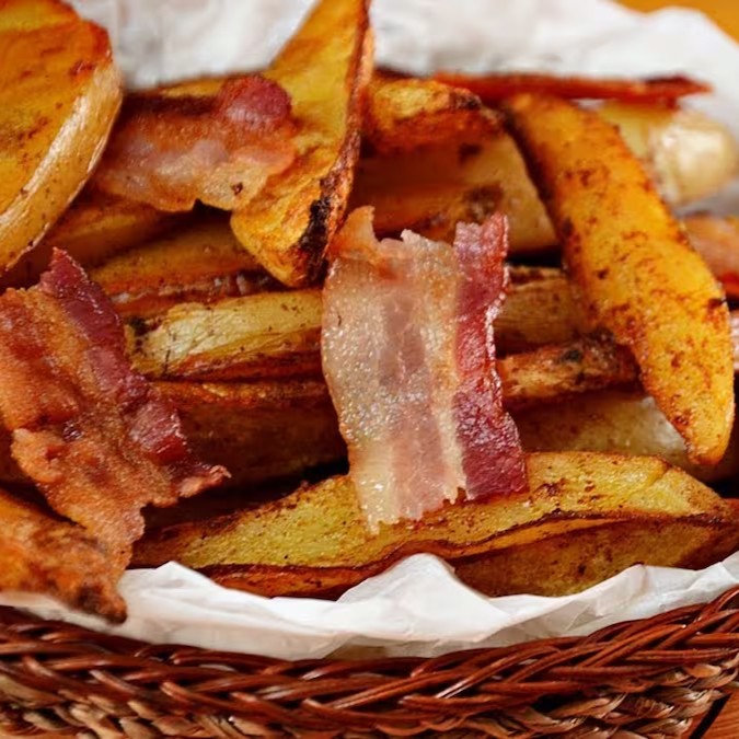 Batata rústica com bacon e parmesão.