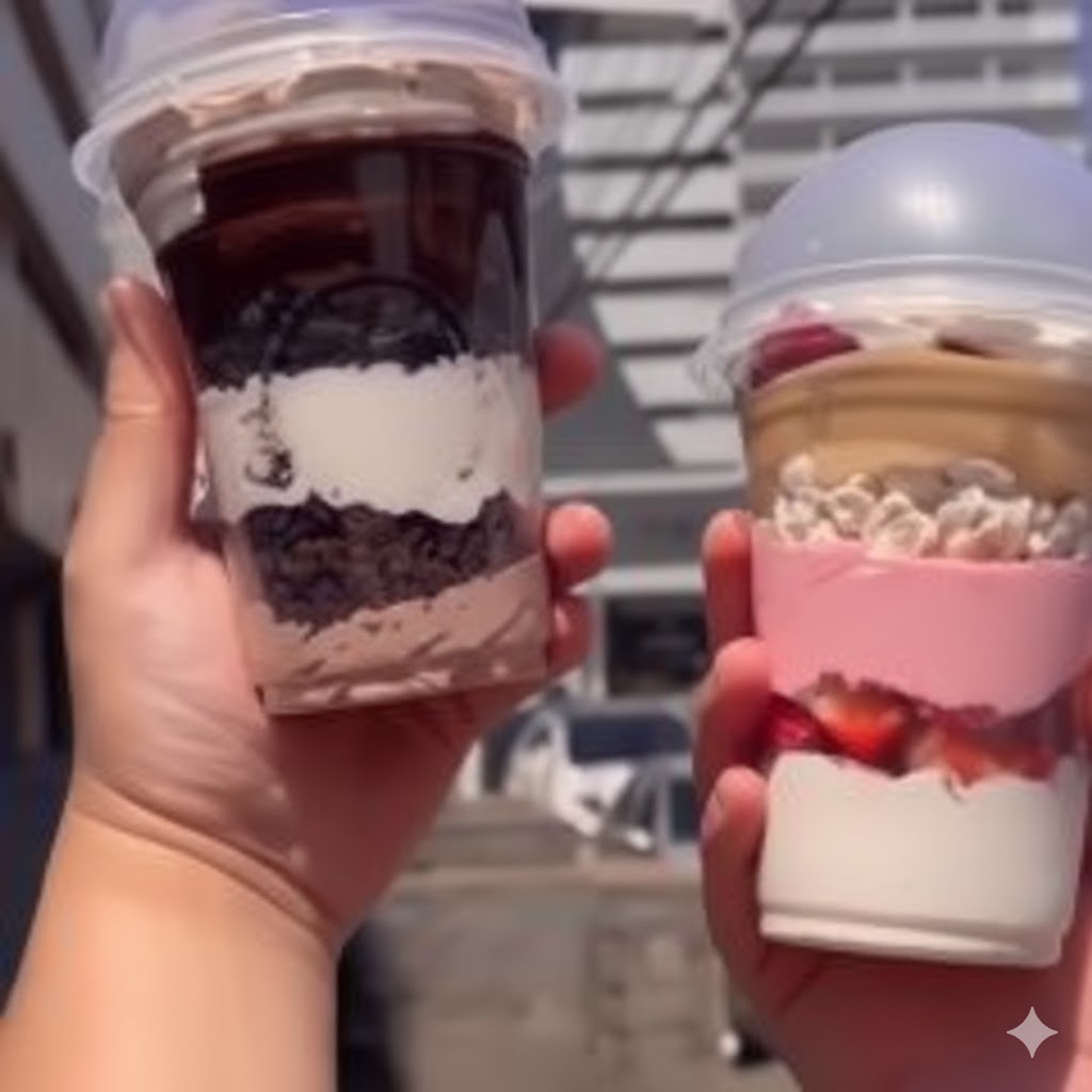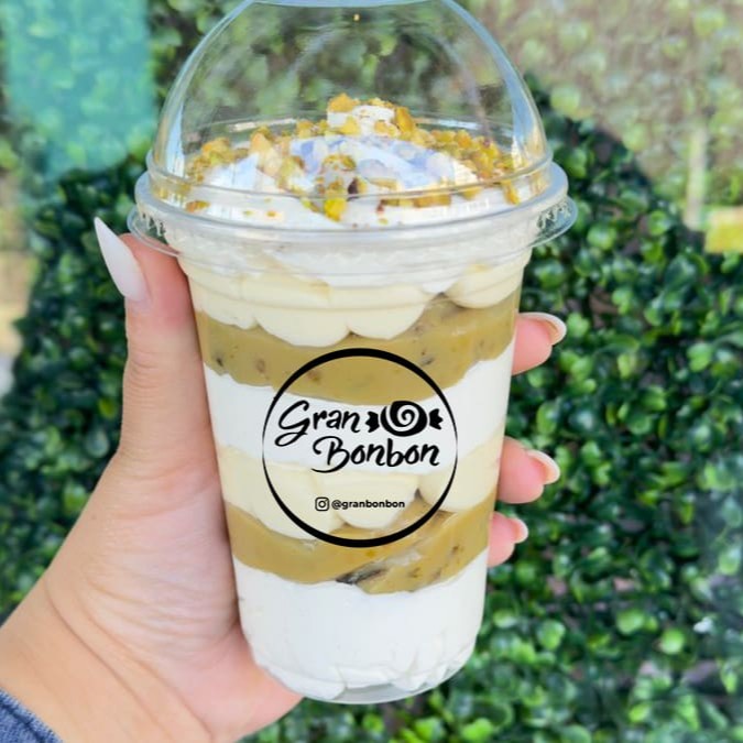 O Copo Granpistachio é um deleite irresistível e repleto de sabor. Este copo luxuoso é generosamente recheado com uma mousse suave e delicada de leite Ninho, que se funde perfeitamente com um brigadeiro cremoso de pistache, proporcionando um equilíbrio perfeito entre doçura e sabor. O toque final é uma camada tentadora de ganache de chocolate branco e pedaços de pistache frescos e crocantes. Esta é uma sobremesa que promete satisfazer todos os seus desejos e transportá-lo para um mundo de puro prazer e satisfação.
