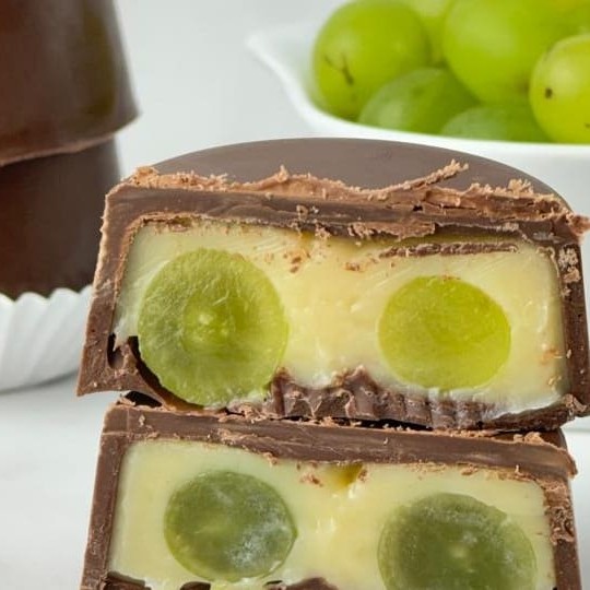 Bombom de uva fresquinho! Casquinha de chocolate recheada com brigadeiro branco cremoso e uvas verdes sem semente. *Todas as casquinhas são feitas de chocolate nobre de alta qualidade, fazendo com que a experiência seja única e deliciosa. Derrete na boca.