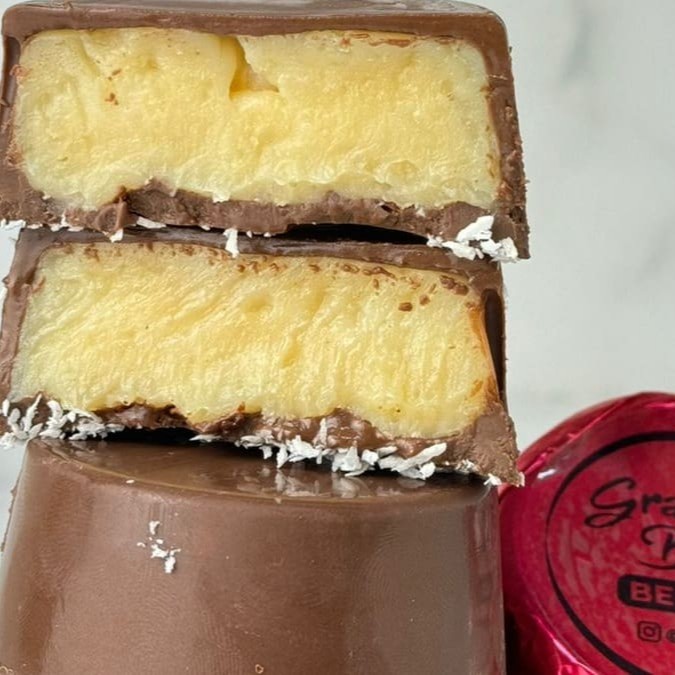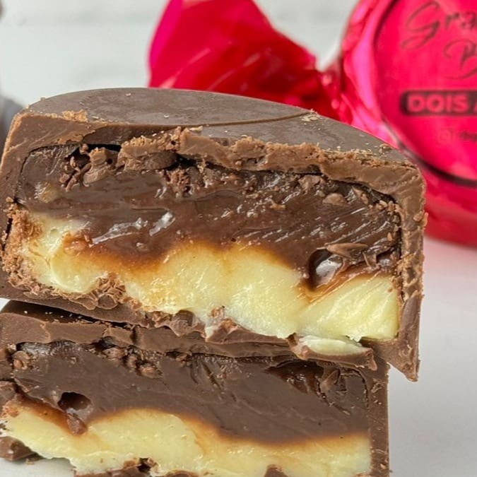 Delicioso bombom recheado com a combinação perfeita entre brigadeiro branco e brigadeiro preto tradicional. *Todas as casquinhas são feitas de chocolate nobre de alta qualidade, fazendo com que a experiência seja única e deliciosa. Derrete na boca.