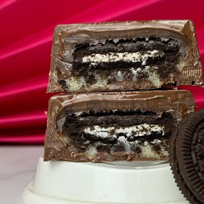 Delicioso bombom recheado com brigadeiro branco, bites de Oreo e uma bolacha crocante inteira. O campeão de vendas do .