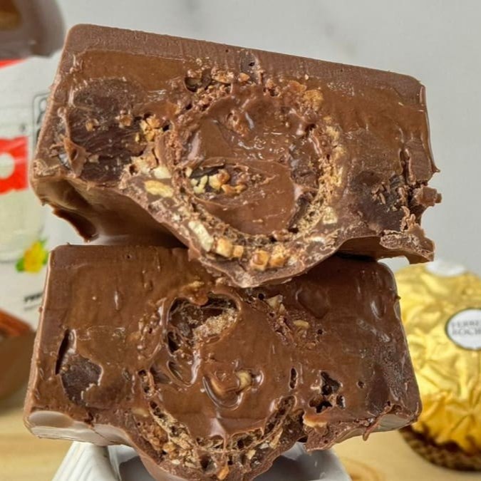 Bombom recheado com camadas de Nutella Original, brigadeiro preto cremoso e um bombom ferrero rocher nteiro. *Todas as casquinhas são feitas de chocolate nobre de alta qualidade, fazendo com que a experiência seja única e deliciosa. Derrete na boca.