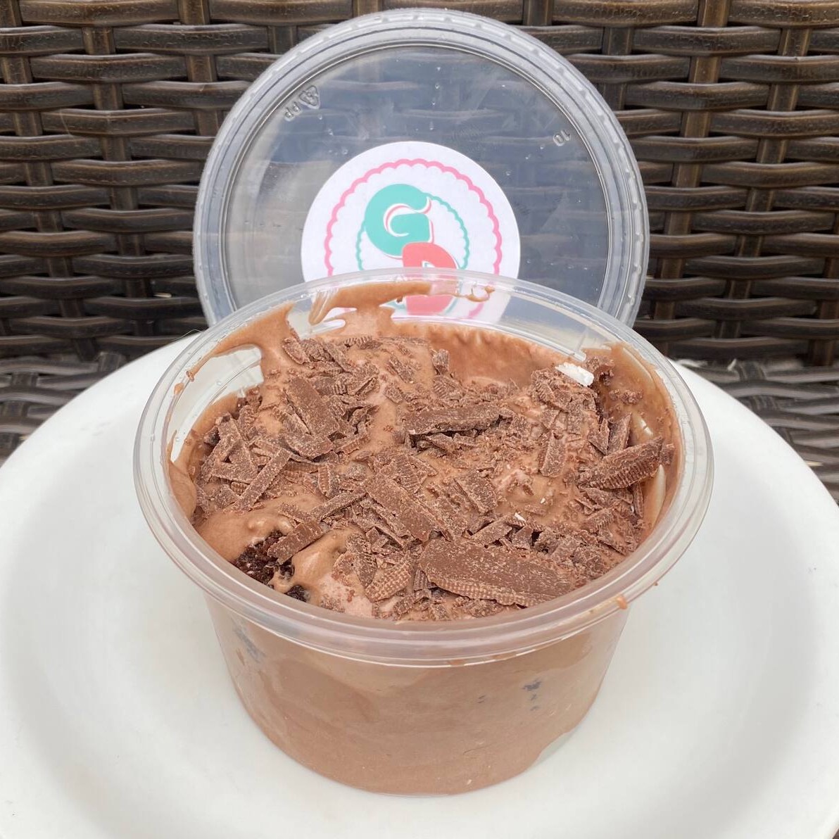 Deliciosa cobertura de Chocolate Ao Leite com Raspas de Chocolate Ao Leite.