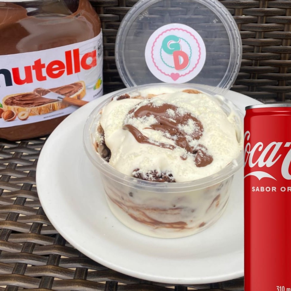 Pedaços de Brownie cobertos por um delicioso creme de Leite Ninho e Nutella. Acompanha uma Coca-Cola lata geladinha de 310ml.