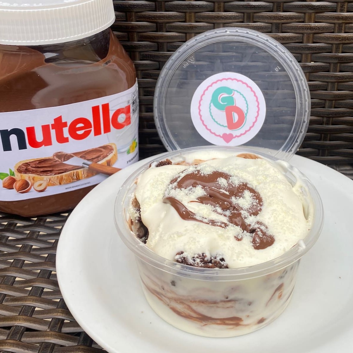 Deliciosa cobertura de Nutella, polvilhada com Leite Ninho e pedaços de Avelã.