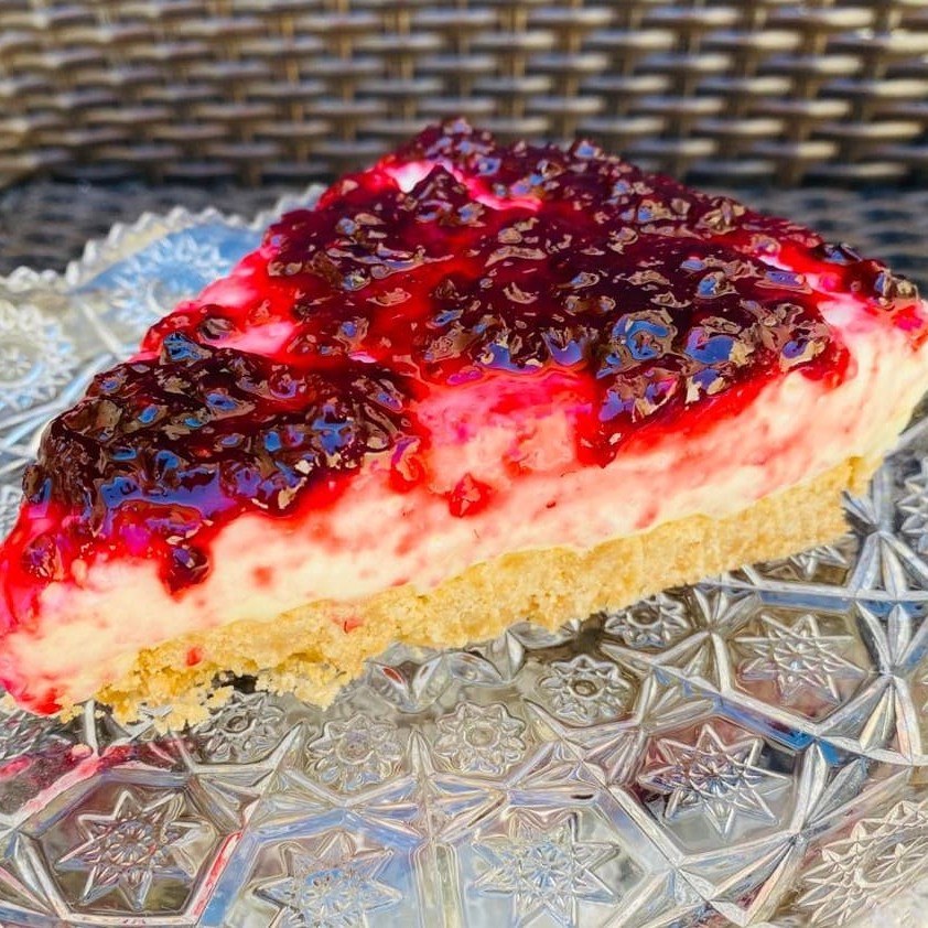 Apresentamos nossa irresistível Cheesecake de Frutas Vermelhas, um clássico da categoria 'Bolos & Tortas'. Este divino doce é meticulosamente preparado com um tradicional recheio de quatro leites, conferindo uma textura cremosa e aveludada. O grande destaque fica por conta da nossa encantadora geleia caseira, composta por frutas vermelhas frescas, que adiciona uma camada de sabor intensamente frutado e uma delicada acidez que equilibra perfeitamente a doçura do bolo. O resultado é uma sobremesa digna de aplausos, que promete seduzir seu paladar a cada mordida.