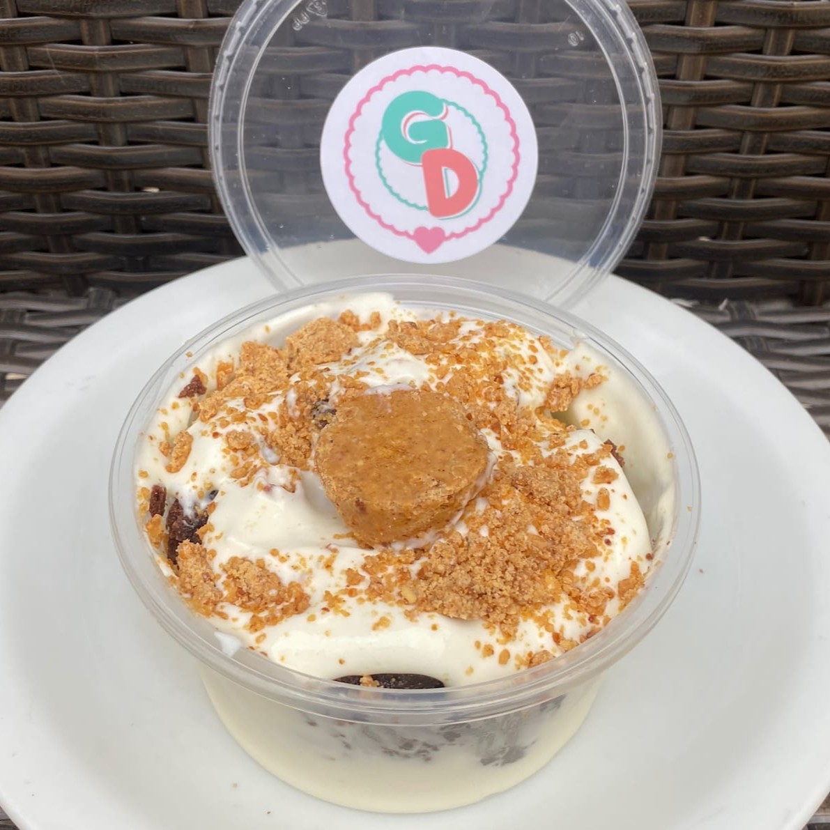 Deliciosa cobertura de Doce de Leite Cremoso com pedaços de Amendoim Crocante.