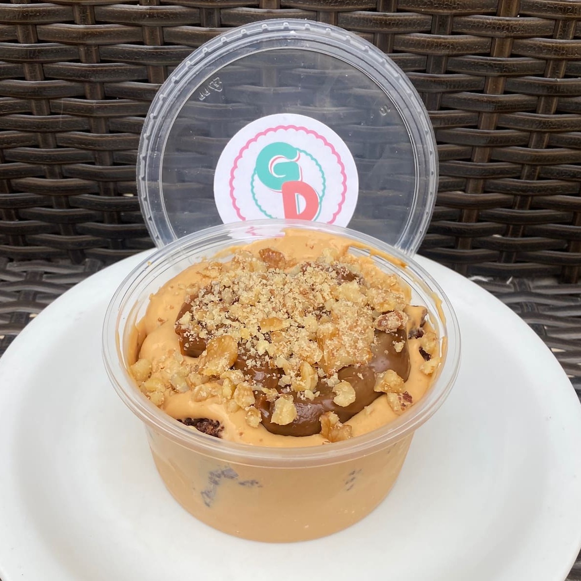 Deliciosa cobertura de Doce de Leite com pedaços de Nozes.